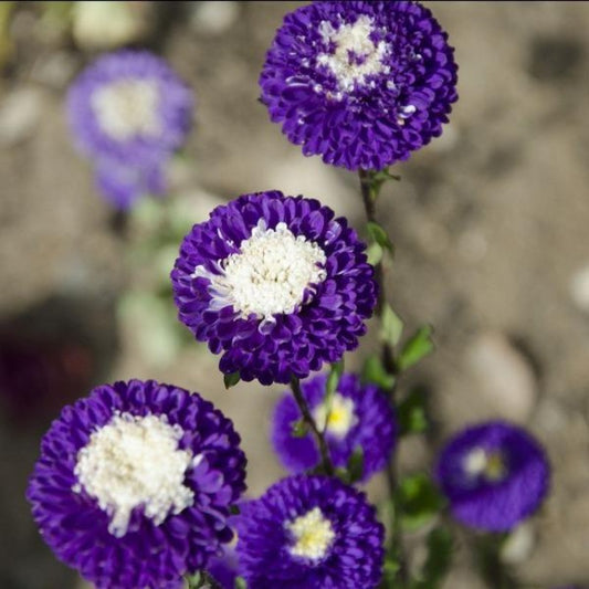 Aster Pompon Blue Seeds - Callistephus Tall Pompon Blue
